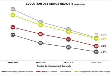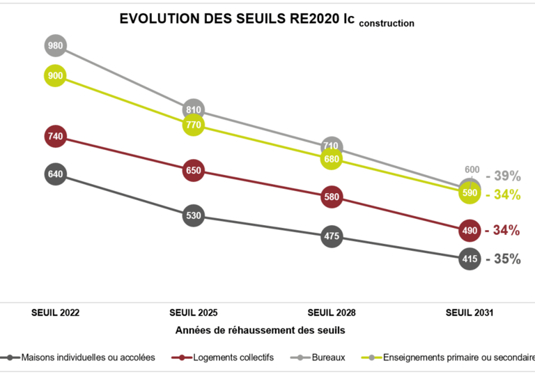 La réglementation environnementale RE2020 oblige les acteurs du bâtiment à abaisser l'impact carbone dynamique des constructions neuves de façon très significative. Les futurs seuils (2028, 2031) rendent la conformité réglementaire des futur permis de construire toujours plus difficile à respecter.