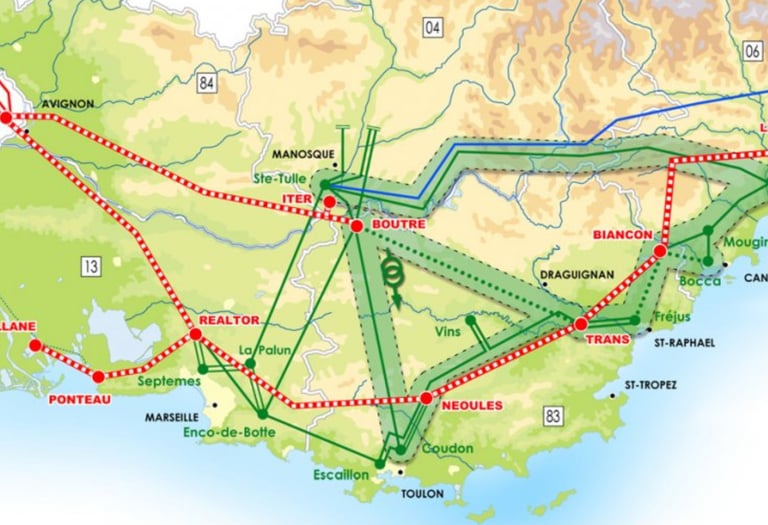 Le département des Alpes-Maritimes est alimenté par une antenne du réseau Haute Tension, distribuant une électricité majoritairement produite hors région Sud (la région consomme deux fois plus qu'elle ne produit). Notre territoire est donc fortement dépendant des centrales nucléaires de la vallée du Rhône et de la stabilité du réseau, ce qui le rend extrêmement vulnérable.